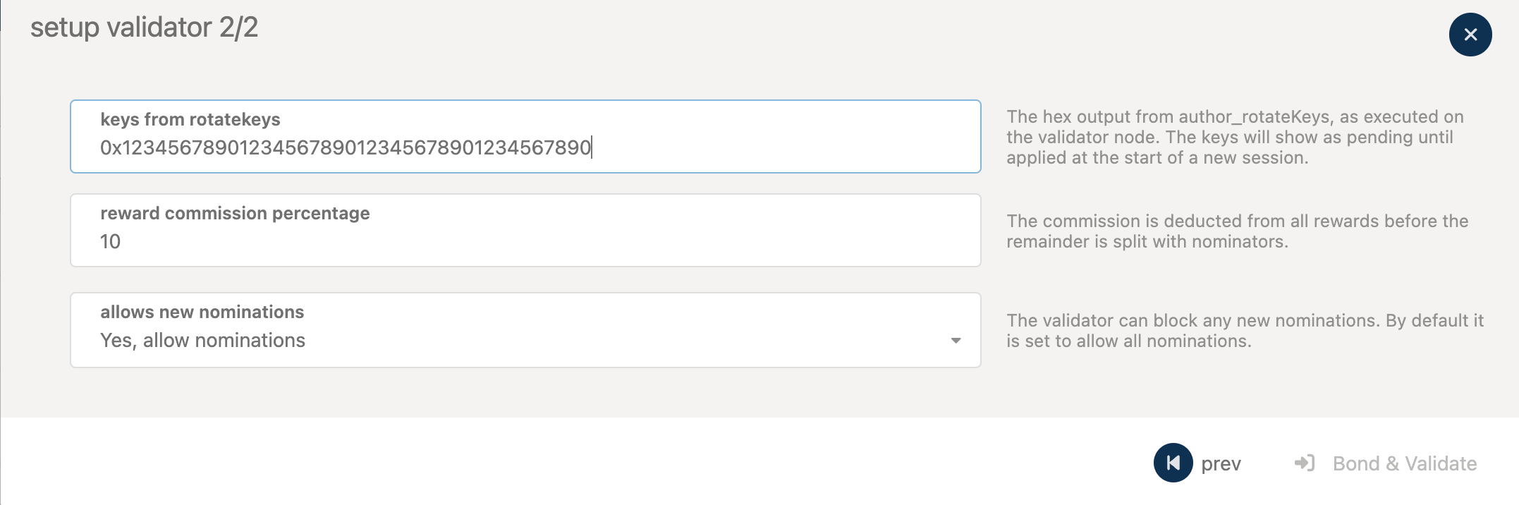 Finalize the setup by clicking "Bond & Validate". Then sign the transaction.